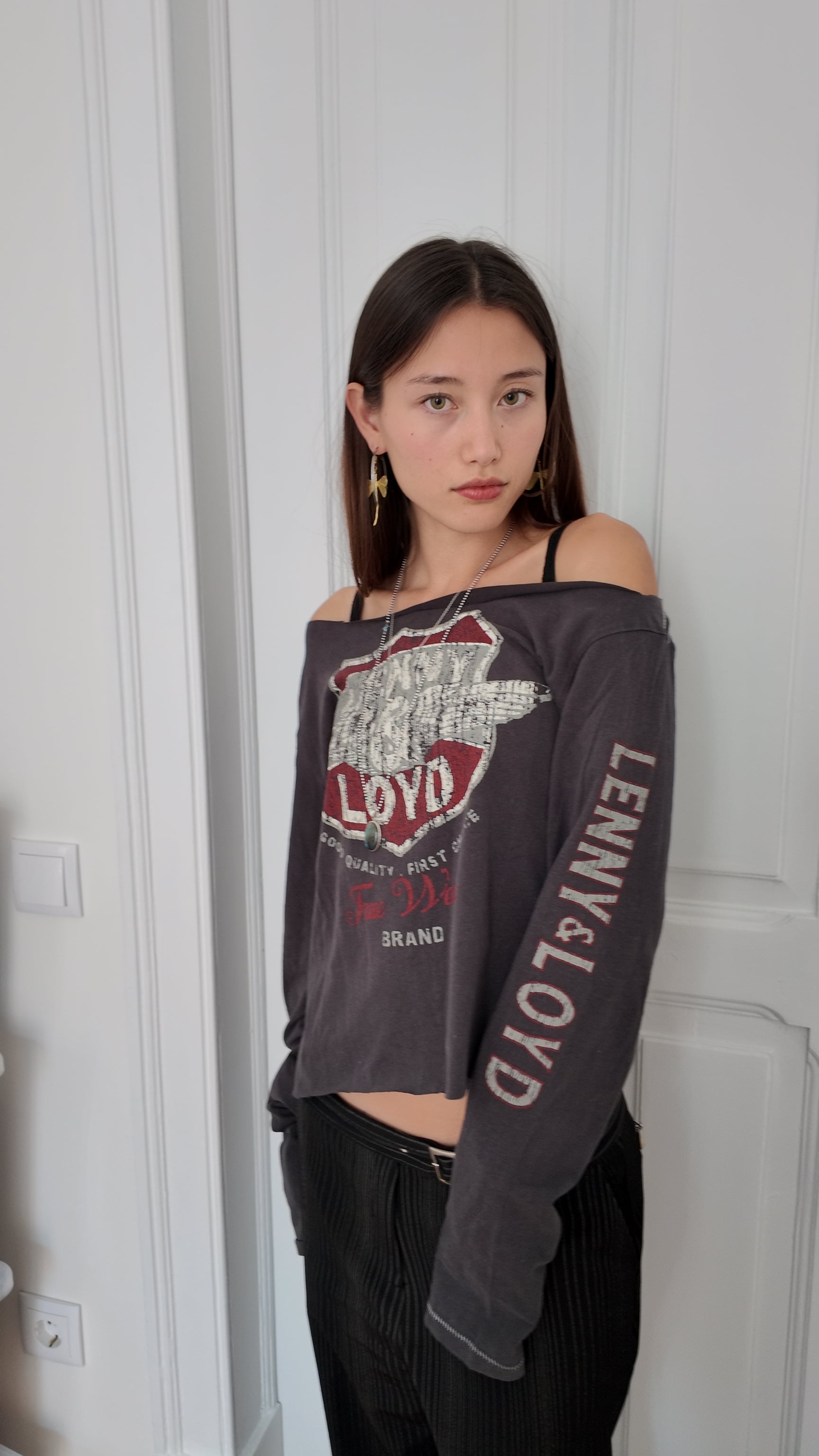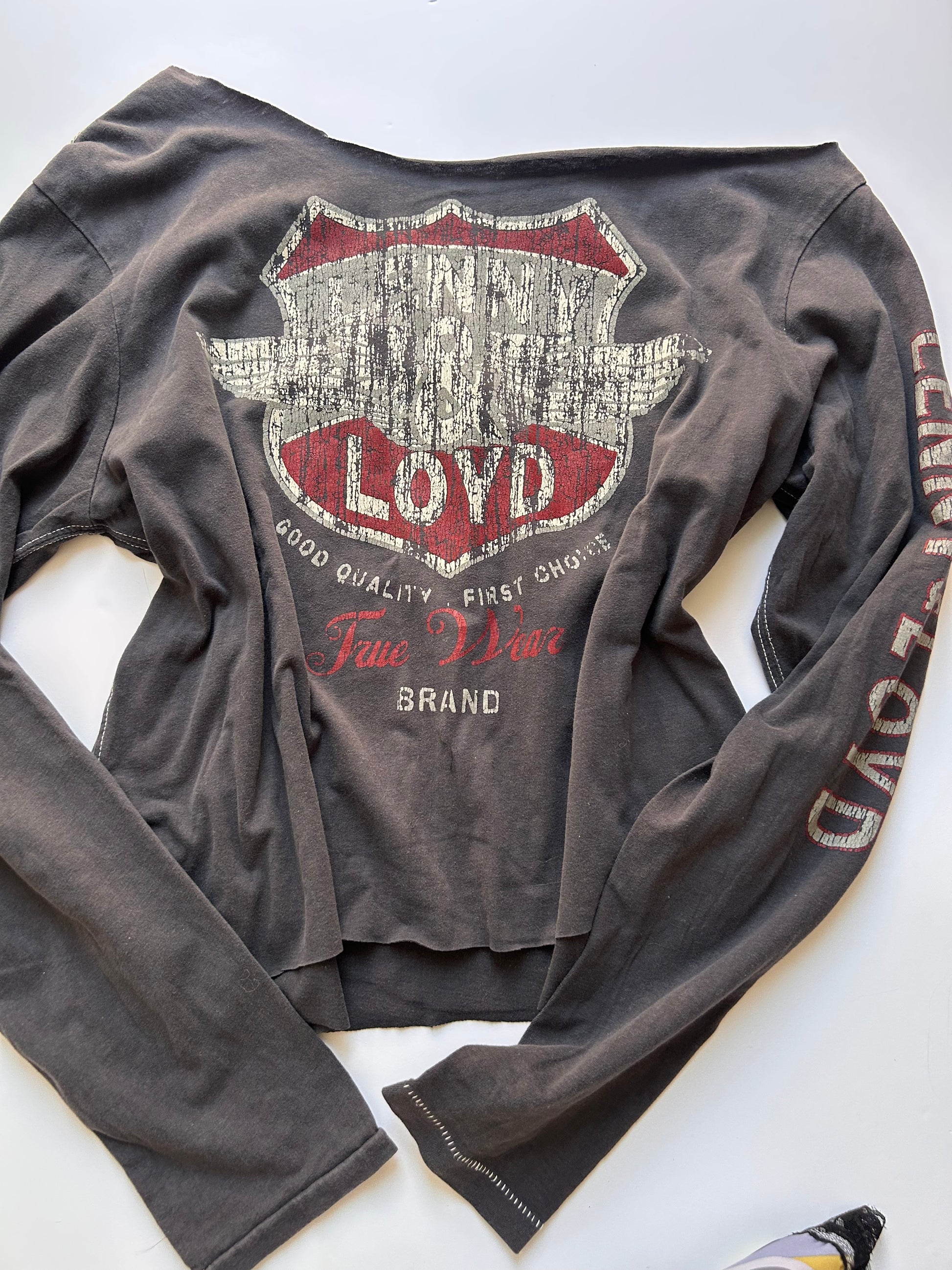Adorable vintage long sleeve top reworked to be off the shoulder size L