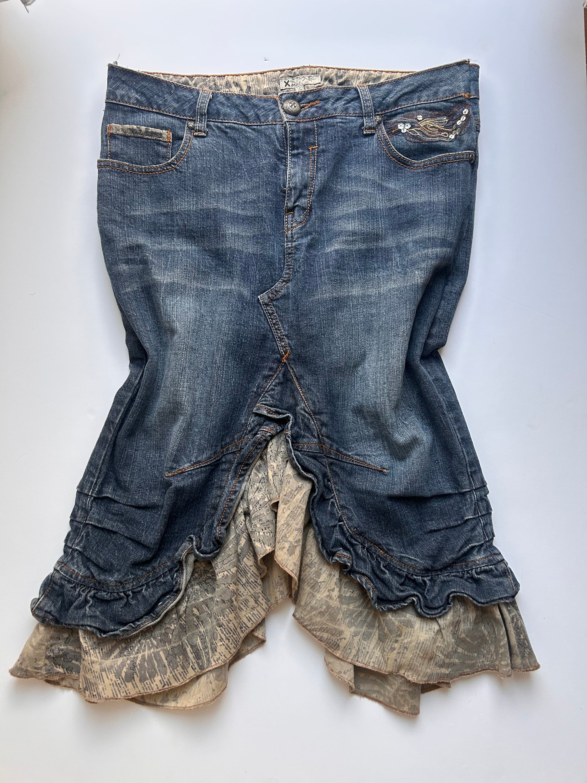 Fairy midi denim skirt with ruffle detail size 36/38