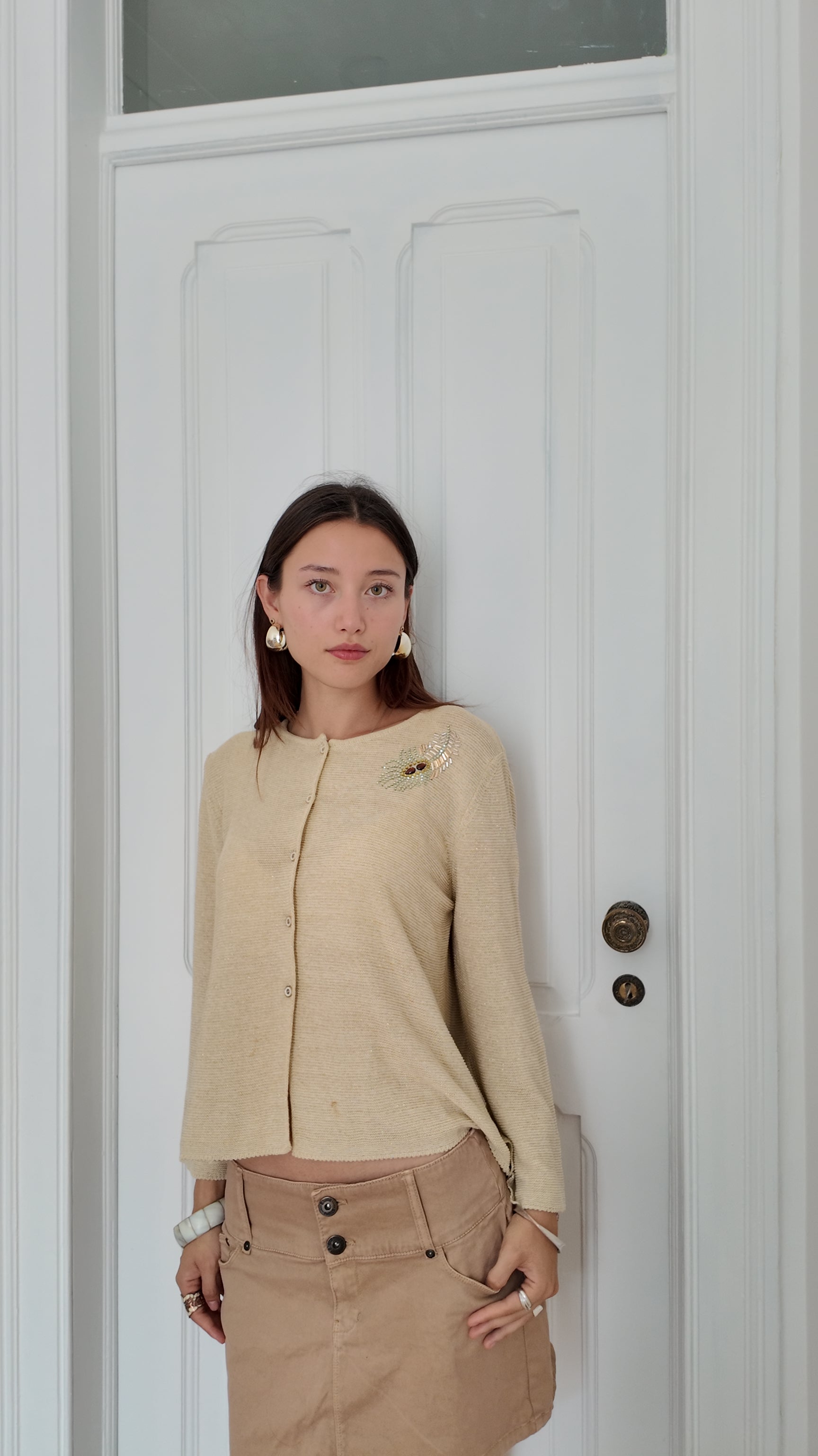 Adorable beige cardigan with bead detail size M